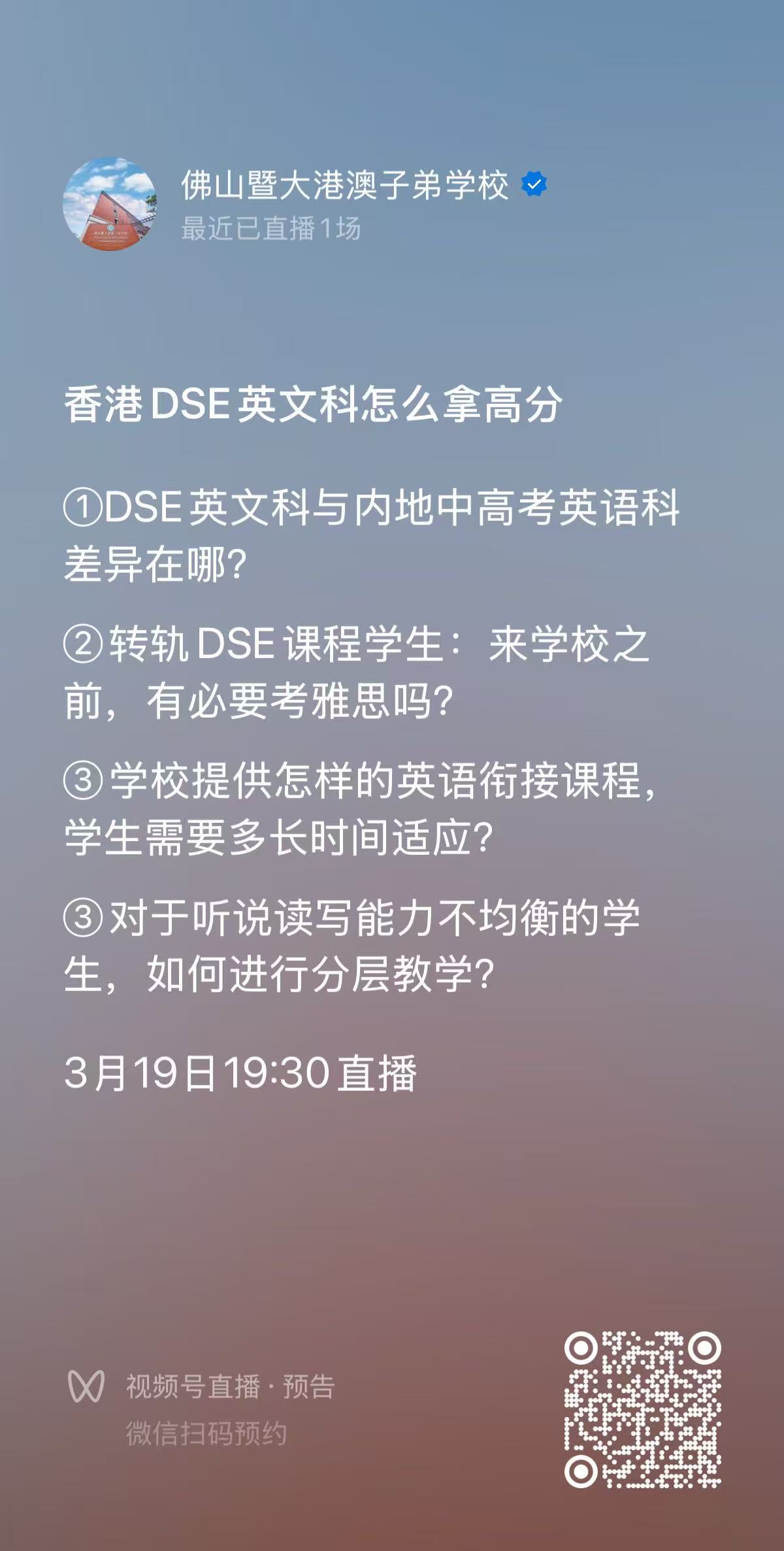 广州艺术中学:3月19日全景探校直播