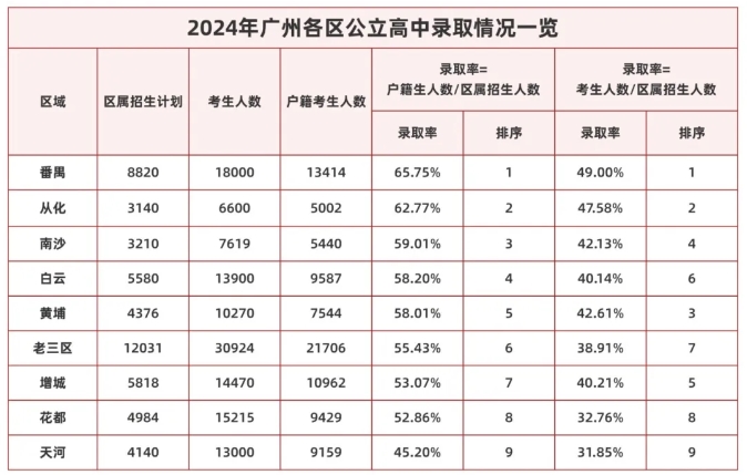 广州各区公立高中录取情况