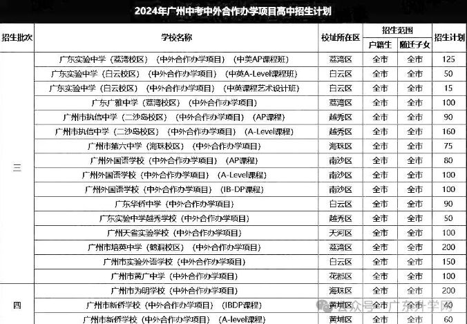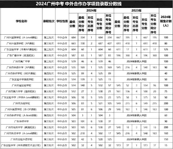 024年广州中考中外合作办学项目录取情况